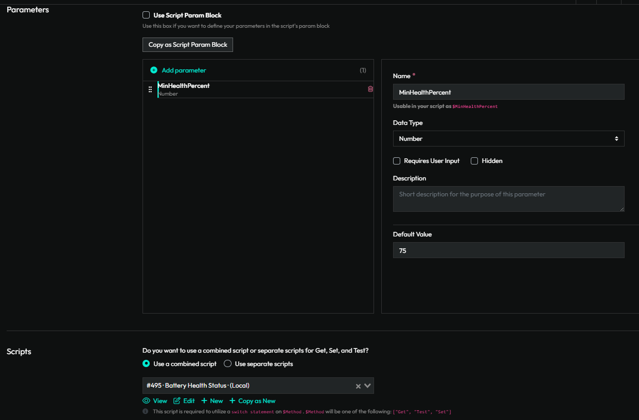 if ($null -ne $health) { $compliant = ($health -ge $MinHealthPercent) }