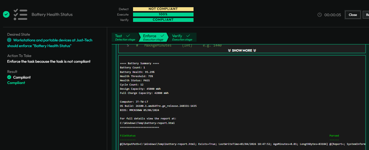 ==== Battery Report (Generate + Parse + Summary + Health Compliance) ====